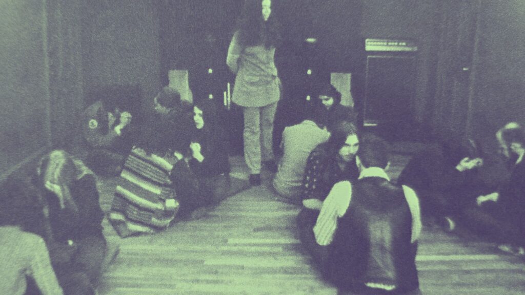 Upon returning from Mexico in 1967, the Process Church established its first major chapter house in London. The space served as headquarters, living quarters, and ritual center. The stark aesthetic—black walls, minimal furnishings, dramatic lighting—reflected the group’s theatrical sensibility and serious purpose.